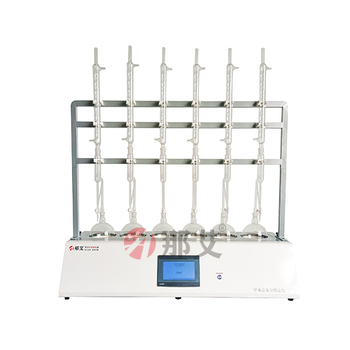 水分測定儀是《中國藥典》等藥品標準中的常規檢查項目,旨在控制藥品中的含水量,以防藥品霉變、水解、氧化等。利用水在甲苯中溶解度小,且甲苯的沸點較低的的特性,將甲苯和一定量的樣品放入裝置中,供試品種的水分和甲苯蒸汽一起蒸出,收集蒸餾液,冷卻后待水與甲苯分層后從水分測定管中讀出供試品種的含水量。共沸蒸餾法試樣中的水與甲苯經蒸餾形成共沸二元混合物被蒸餾出來,水與甲苯的密度不同,在接收器中分層,根據蒸出水的體積,計算水分含量。